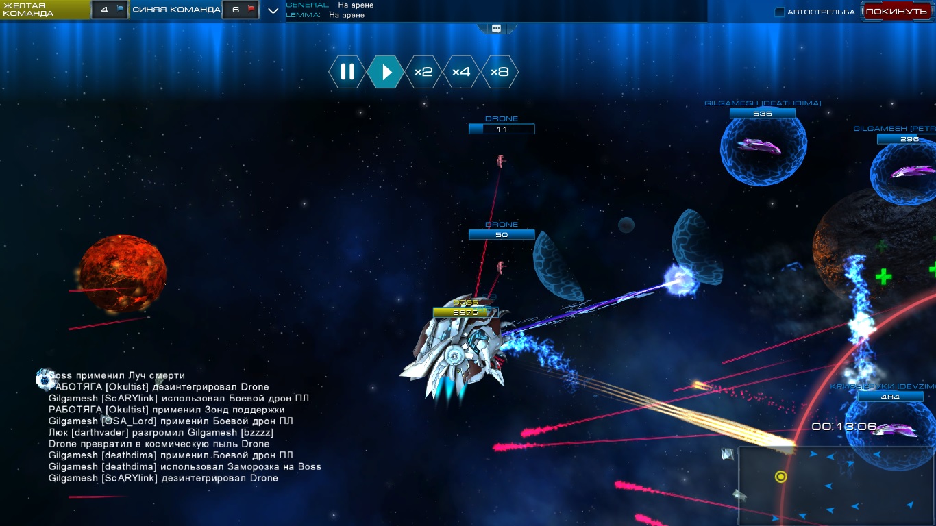 Некоторых из союзников может потрепать босс и поэтому настоятельно рекомендую восстанавливать уровень хп у них ремонтным лучем. Силовые преграды используем, когда к Вам направлены залпы от босса, а во время кд преград можно использовать истребители.